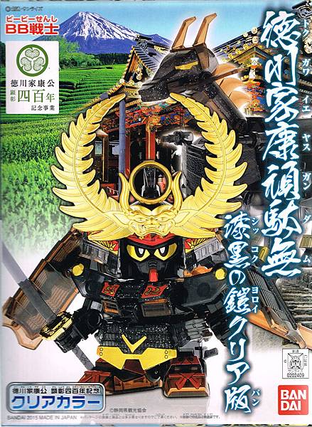 ~~~~~~~~~~~~~~~~~~~~~~~~~~~~~ 武神降臨篇 NO.355 德川家康 武神降臨篇 NO.355 徳川家康頑駄無 漆黒の鎧版 (靜岡限定) ~~~~~~~~~~~~~~~~~~~~~~~~~~~~~ 武神降臨篇 的 第十款 商品 詳細介紹如連結 http://agwolf.pixnet.net/blog/post/27867663 BANDAI 2015年7月3日發行 德川家康公 顯彰400年紀念 這麼俱紀念價值的BB怎可不入手 ~ (雖然已經共模第六次了 ~ 不過還是比劉大耳少很多 XD) 僅在靜岡HOBBY SQUARE 、久能山東照宮、駿府匠宿 這三個地方發售 而且一次最多只能帶3盒 令我一開始買的得十分受挫 (沒有人要特地幫我跑啊...) 還好 ~ 還是有所謂的真朋友存在(大笑) 連塑膠袋都入手了 ~ 真是感動 !!!