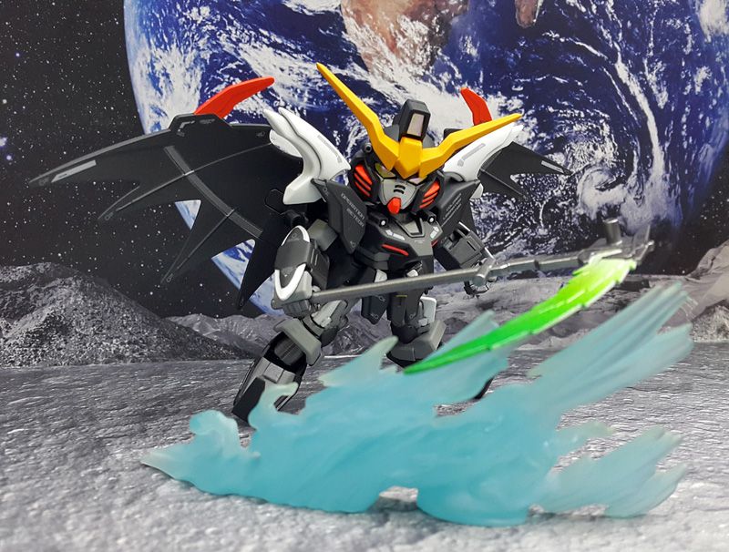 EX-STANDARD系列的模型已推出十多款了,其中大部分款式都是主角機,或是已經在正規BB戰士推出過的MS,難得這次的EW版地獄死神高達是之前沒有SD模型化過的非第一主角機呢。和同系列的其他款式一樣,EW版地獄死神本體的比例及造型良好,但分色欠奉而且武器造型簡陋,因此製作要花不少時間及功夫呢!