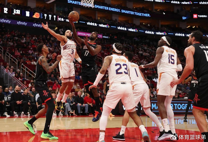 北京时间1月6日,NBA常规赛,火箭坐镇主场迎击太阳。本场比赛之前,火箭21胜11负排名西部第5,过去5场比赛他们4胜1负,状态还不错。和上赛季相比,火箭本赛季的战绩并没有明显提升,但毫无疑问的是,他们的上限绝对是比上赛季更高的,更有机会去冲击总冠军了,杜兰特到来之后,火箭的关键球能力肯定更强一些,季后赛也会打得更有条理,更加强硬。另一边的太阳队,本场比赛之前,21胜14负排名西部第7,没想到太阳这个赛季依然具备季后赛实力,送走杜兰特和比尔后,太阳靠布克+狄龙打出这个战绩,已经很不容易了。 本场比赛,双方在首发阵容上面,火箭这边派出的是,杜兰特,小史密斯,伊森,阿门,亚当斯。申京因为上一场比赛中严重受伤缺席。太阳这边派出的是,狄龙,奥尼尔,威廉姆斯,布克和吉莱斯皮。首节比赛开始,太阳率先拿到球权,吉莱斯皮的三分开火一击命中,打进本场比赛首个进球,阿门突袭篮下强起上篮也为火箭队开张,狄龙坐打篮下,强吃防守打进一球,布克闪电突破快攻上篮轻松打进,吉莱斯皮手感火热,弧顶追身三分出手一箭穿心,亚当斯顺切篮下,单手劈扣技惊四座,杜兰特借助掩护后的干拔三分球一箭穿心。 首节比赛,两队就展开拉锯战,比分你追我赶交替领先,太阳保持着微弱领先优势。第一节比赛结束,太阳29-25领先火箭4分。次节比赛开始,伊戈达罗的旋风冲刺上篮帮助太阳先下一城,谢泼德利用挡拆加速上篮予以还击,吉莱斯皮的超远三分开火一击命中,伊森突进罚球线干拔跳投同样也有,小史密斯对抗上篮制造杀伤,站上罚球线两罚全中,奥尼尔点开防守,横移一步的大号三分球洞穿篮心,伊森底角埋伏,三分线外搭弓射箭百步穿杨,伊戈达罗顺切篮下,双手震荡灌篮技惊四座。太阳继续保持着5分左右领先优势,半场比赛战罢,太阳60-54领先火箭6分。 下半场比赛开始,易边再战,小史密斯的翻身中距离干拔命中,揭开第三节比赛序幕,马威空接暴扣立马还击一球,布克超远三分开火空心入网,阿门禁区内翻江倒海制造犯规,罚球线两罚都有,史密斯底角三分球张手就有,汤普森变向拉杆上篮高难度命中。此后一段时间,两队进攻效率都有所下滑,太阳队单节只得到18分,火箭抓住机会,节末依靠杜兰特和汤普森的突投结合将分差抹平,双方回到同一起跑线。三节比赛打完,两队战成78-78平。末节决战,谢泼德后撤步跳投拉开决战序幕,狄龙面对旧主轻松抛投打进,双方回到同一起跑线。 此后两边陷入拉锯战,分差始终未能拉开,战至最后时刻。终场前5秒,布克单打三不沾,太阳24秒违例,留给火箭最后一攻机会,杜兰特面对奥尼尔防守弧顶三分完成绝杀。最终全场比赛结束,火箭100-97险胜太阳。 数据方面,太阳这边,德文-布克27分;狄龙-布鲁克斯15分4篮板;罗伊斯-奥尼尔15分6篮板2抢断;科林-吉莱斯皮11分6篮板4助攻;乔丹-古德温11分3抢断。火箭这边,凯文-杜兰特26分10篮板4助攻;阿门-汤普森17分7篮板6助攻;塔里-伊森12分8篮板;里德-谢泼德11分2抢断;小贾巴里-史密斯17分7篮板。