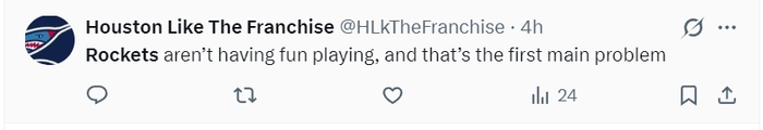 休媒:火箭球员在比赛中毫无乐趣可言,这才是他们面临的主要问题之一。